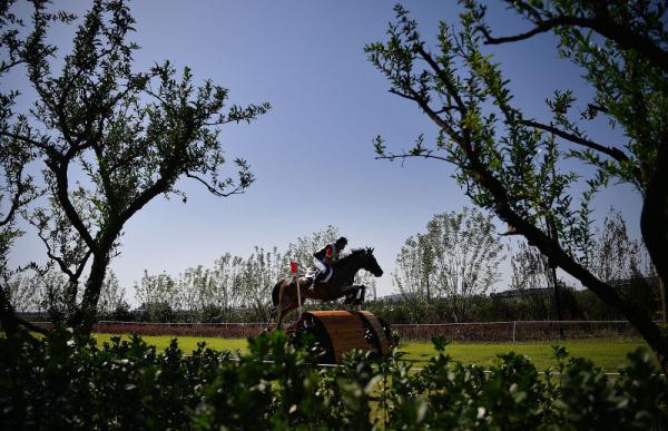 9月20日,第十四届全运会马术三项赛团体越野赛在西安举行。