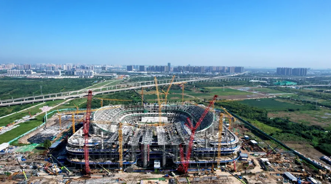 西安国际足球中心项目是2023年亚足联亚洲杯西安赛区的专业足球场,占地280亩,总建筑面积25万平方米,包含1座6万固定座席的专业足球场、2块国际标准室外训练场。配备有62个VIP包厢和1个中央主席台,符合国际足联和亚足联标准,可承接包括亚洲杯、世界杯在内的国际一流足球赛事。项目设计充分融入“周秦圣殿,汉唐雄风”的元素,突出方正恢弘的西安建筑文化特色,融合国际时尚的体育建筑风格,充分展现了一个现代、活力、轻盈的体育地标建筑。