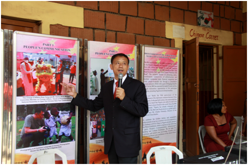9月24日,中国驻尼日利亚使馆携手尼联邦首都区中等教育委员会,在该区的瓜林帕中学“中国之角”举办“‘一带一路’中国-尼日利亚合作成果展”。中国驻尼使馆文化参赞兼中国文化中心主任李旭大、尼联邦首都区中等教育委员会副主任法提玛、联络官雅库布、瓜林帕中学校长阿凯瑞勒、部分师生代表以及当地媒体记者等出席开展仪式。