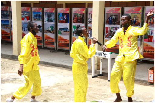 法提玛副主任代表中等教育委员,感谢中国驻尼使馆多年来为中尼人文交流所做出的贡献,以及对联邦首都区教育工作的大力支持。她如数家珍般地列举了使馆近年来为推进13个“中国之角”的发展所捐赠的电脑、空调、电视、音响、家具、发电机、体育设施以及图书等教学物资,特别是去年新冠肺炎暴发以来,使馆向首都阿布贾的100所学校捐赠了急需的抗疫物资,并先后举办以“并肩抗疫”为主题的“中学生绘画大赛”和“中国歌舞大赛”,提升了当地广大师生共克时艰、战胜疫情的信心。