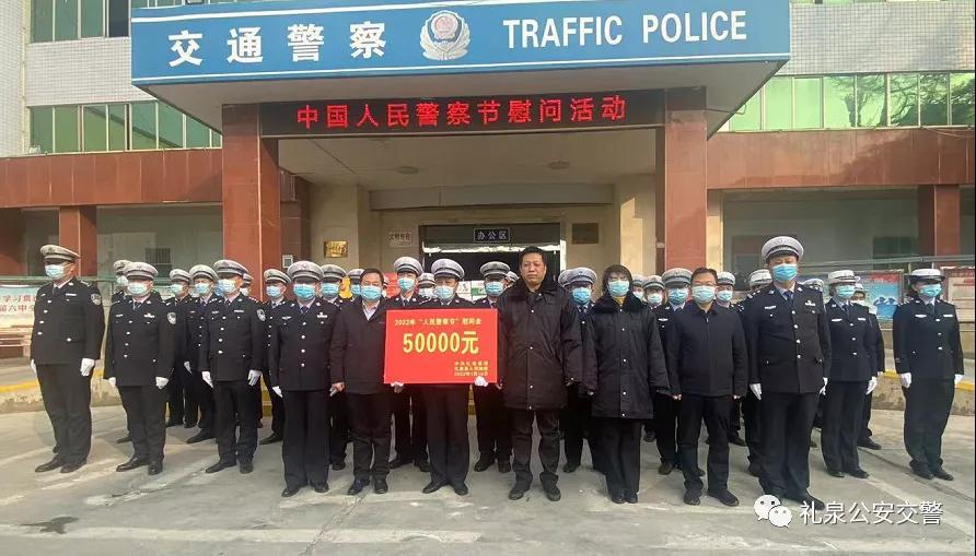 1月10日,第二个“中国人民警察节”,陕西礼泉县人民政府县长李函,县委副书记赵存锁,县委常委、副县长路红,政府办主任王碧波一行来到礼泉县公安局交警大队,向一年来坚守在疫情防控、交通保畅和维护社会安全稳定的全体民辅警送来了第二个“中国人民警察节”节最亲切的慰问和祝福,并送来了慰问金和慰问品。