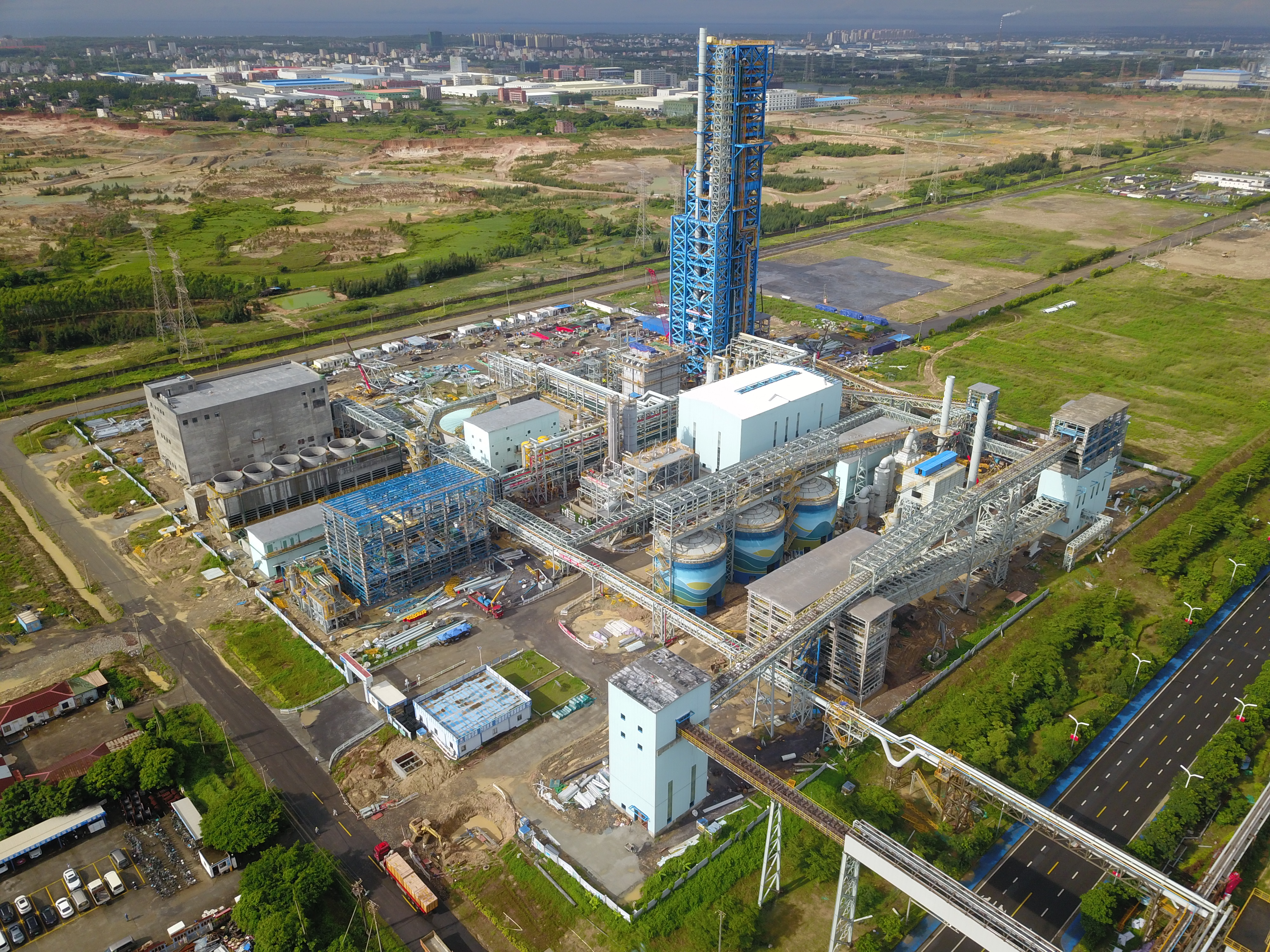 据介绍,湛江钢铁氢基竖炉项目是国内首座以氢代碳的氢冶金工艺技术,以清洁能源替代碳,研发和使用低碳冶金工业技术,加速清洁能源产业快速发展。其中作为支撑竖炉系统的钢结构框架,钢结构散件数量多,整体高度较高,超过120米,高空吊装效率低,焊接难度大,焊接质量难以保证,危险性高。为保证氢基竖炉项目工程质量及施工效率,采用单层钢结构模块化平台吊装的方式进行施工及开展相应的技术研究。此次竖炉本体钢结构第一层模块化平台安装高度82米,顶层平台吊装高度为126.5米,共计11层模块化平台。在吊装工作开始前完善施工方案,计算各层钢结构模块化平台的吊装重量,通过平面模拟及吊机性能表,选择合适的吊装机型及吊机平面站位,运用BIM技术及有限元分析,真实模拟现场吊装情况使施工达到最优解。竖炉本体钢结构柱采用十字柱的钢结构截面,其高空对接形式,对接精度及焊缝的收缩变形量在方案中均有体现。并通过BIM可视化应用的方式结合高精度水准仪控制钢结构整体垂直度。此次钢结构平台模块化吊装的方式得到了完美的应用,从前期的技术准备到施工过程的顺利进行,体现了整个项目团队高超的技术水平及高效的执行力;地面拼装时焊接质量有效得到了保障,减少了高空作业存在的安全隐患,相较常规高空吊装,缩短900吨履带吊工期1.5个月以上。