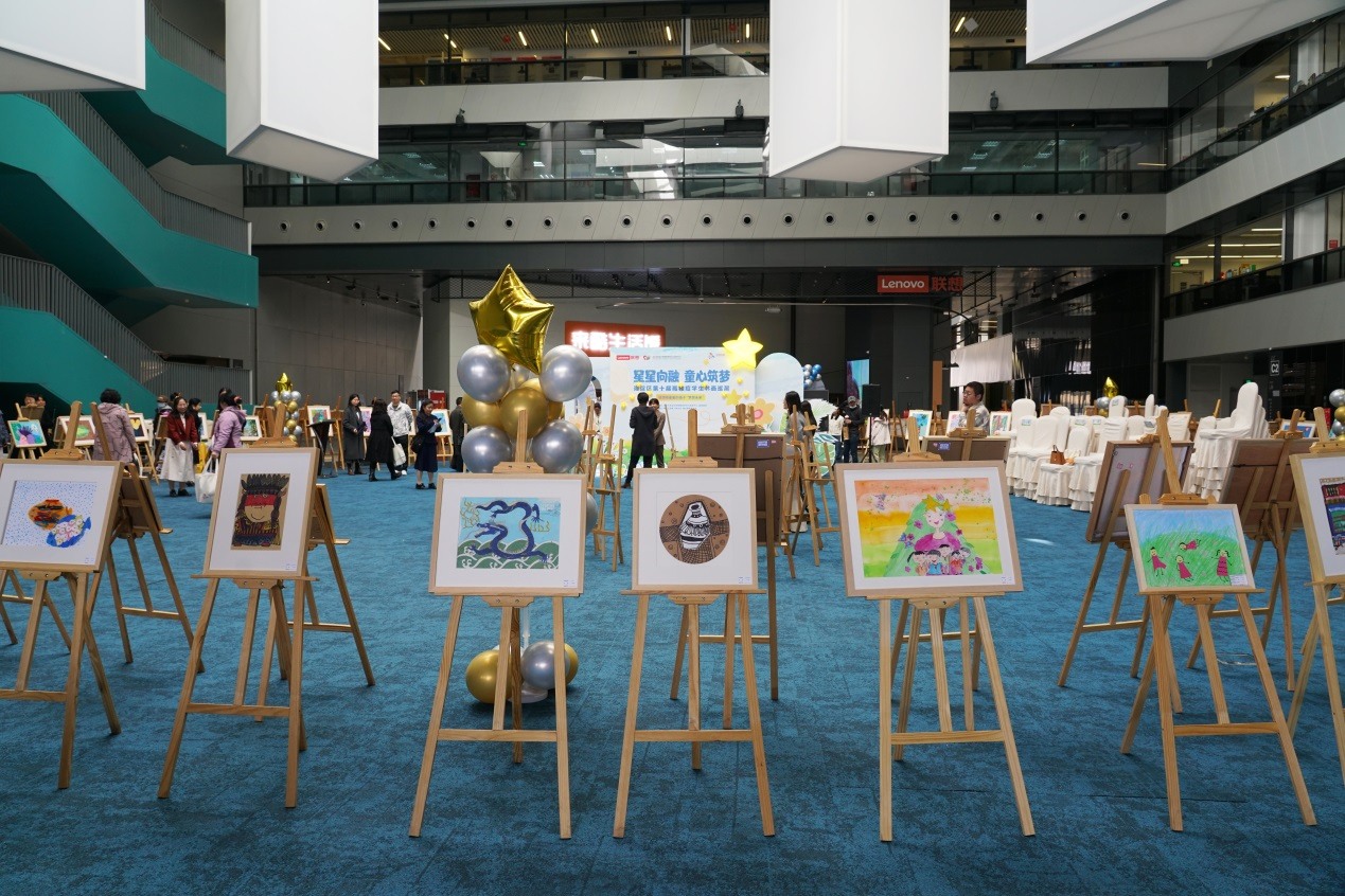 以“星星向融 童心筑梦”为主题的北京市海淀区第十届孤独症学生书画展启动。(中国网/徐林摄)