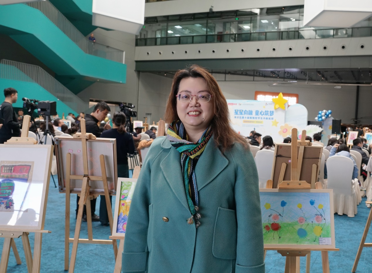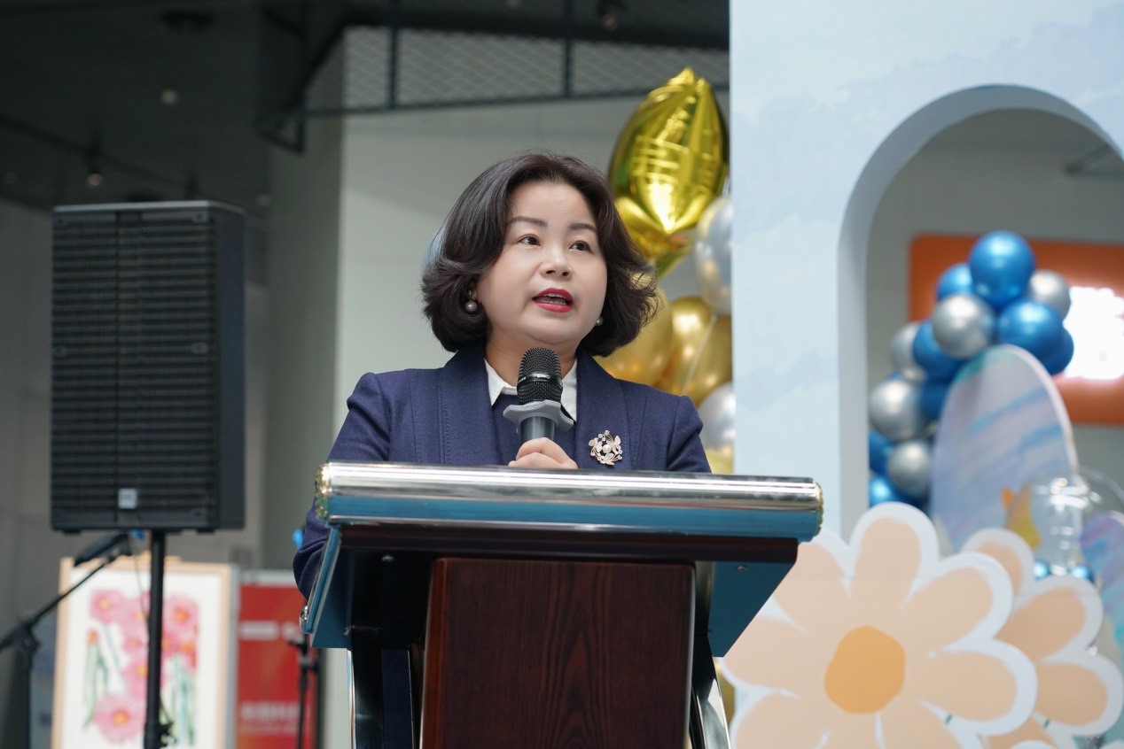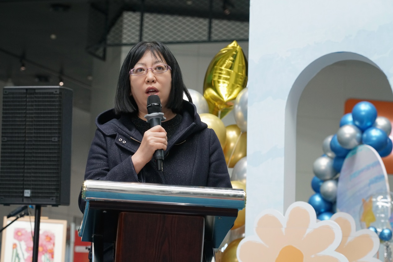 一名学生家长代表讲述了孩子与绘画和融合教育的故事。她说,这样的活动让孩子越来越自信和快乐。看到孩子们的画作能够得到展示,得到社会各界人士的关注,自己的内心有激动更有感动。“相信有来自社会各界人士的持续关爱和帮助,孩子们的明天会越来越好,世界也会越来越包容、越来越温暖!”