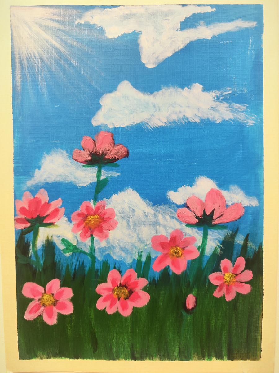 孤独症儿童画作“阳光下的小花”(供图:北京市海淀区特教中心)