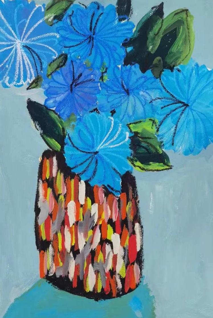 孤独症儿童画作“蓝花”(供图:北京市海淀区特教中心)
