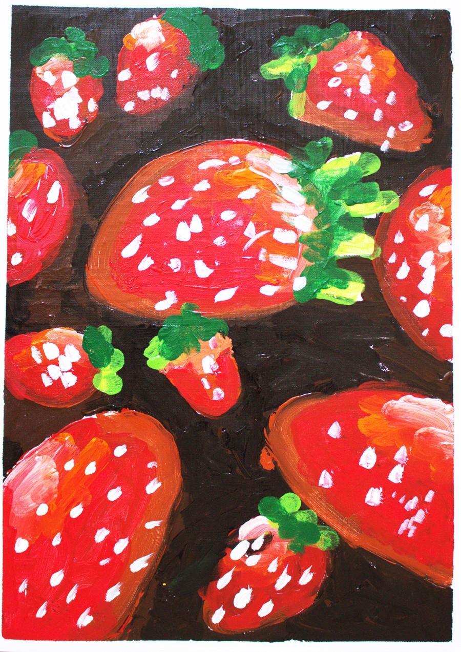 孤独症儿童画作“甜甜的草莓”(供图:北京市海淀区特教中心)
