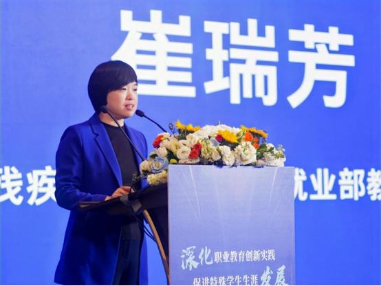 中国残联教育就业部教育处处长崔瑞芳指出,党中央、国务院高度重视残疾人教育事业,通过制定和修订《残疾人教育条例》《中华人民共和国职业教育法》以及实施《“十四五”特殊教育发展提升行动计划》等政策,我国特殊教育与职业教育的发展取得了显著成效。她强调,未来残疾人工作将重点围绕以下几个方面展开:一是扩大普通职业院校对残疾学生的开放性,为更多学生提供职业教育机会;二是改革职业教育教学内容,结合残疾学生实际需求制定专业课程标准;三是加强职业教育师资队伍建设,通过专项培训提升教师的专业化水平;四是推动产教融合,深化校企合作,为残疾学生创造更多实训和就业机会。