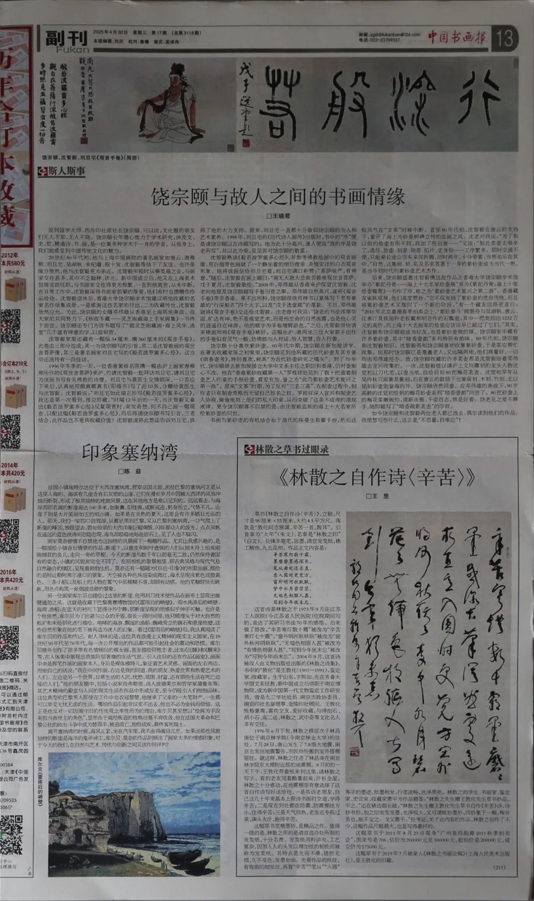 林散之草书《自作诗<辛苦>》,2019年7月著录在《林散之书画论稿》第109页(上海人民美术出版社),2025年4月30日配文发表在《中国书画报》第13版。