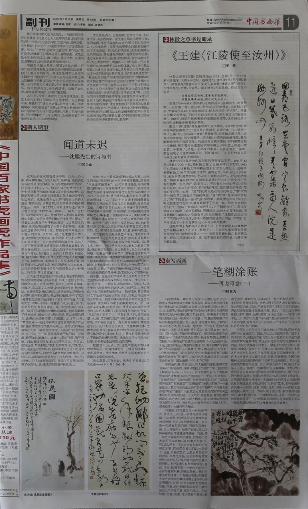 林散之草书《王健<江陵使至汝州>》,2015年5月,著录于《江上草堂食砚斋珍藏林散之书画精品集》,第111页。5月30日,参加在广东省汕头市见贤五号美术馆“向大师致敬——食砚斋珍藏林散之书画精品展”。2025年5月14日,配文发表在《中国书画报》第11版。