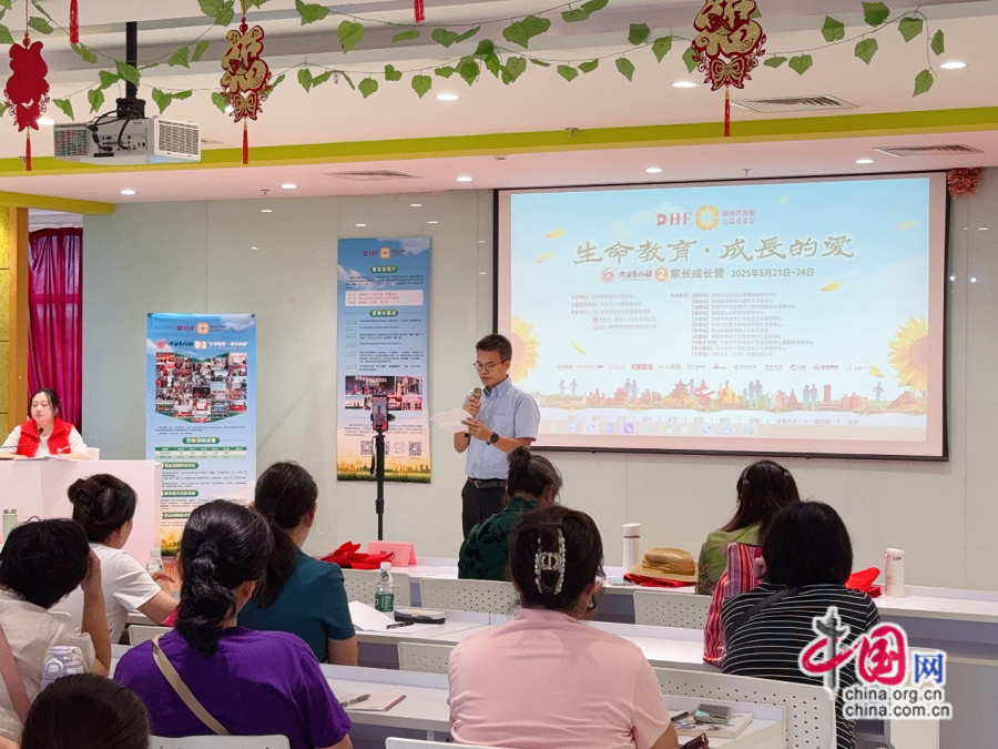 活动开幕当天,湖南省鼎翰公益基金会理事长、鼎翰文化股份有限公司副董事长杨欣带来“开营第一讲”,从公益初心与企业责任出发,阐述了“生命教育·成长的爱”理念。她强调:“勇敢走出来,就是给孩子最好的未来”,点明了家长在孩子成长中的“核心支柱”作用,也凸显了成长营对缓解家庭压力、提升教育能力的重要意义。
