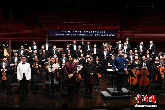中新网深圳9月14日电 (记者索有为)9月13日晚的深圳音乐厅演奏大厅内音乐流淌,2025深圳“一带一路”国际音乐季以一场高水准的开幕音乐会,奏响跨越国界的艺术共鸣,中外艺术家齐聚深圳,以交响为语言,共叙丝路情谊,传递开放包容、文明互鉴的时代强音。