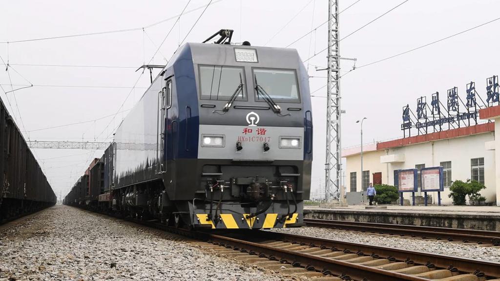 9月4日,一列火车驶进钦州港东站转运集装箱。新华社记者 张爱林 摄