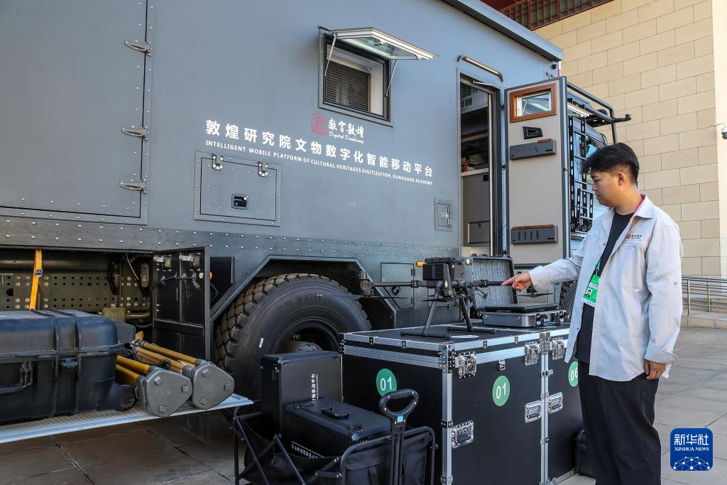 9月22日,在敦煌研究院“典范”“高地”建设成果展上,工作人员介绍敦煌研究院文物数字化智能移动平台及其配套设备。