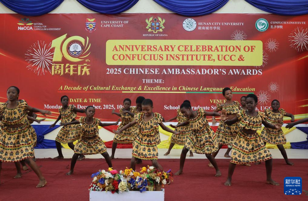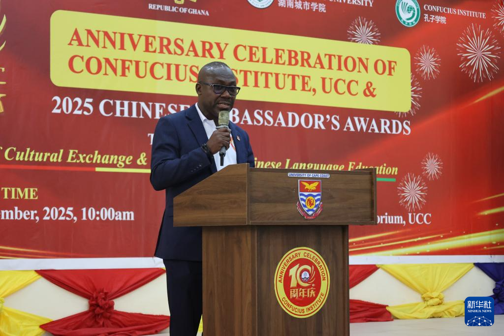 当日,加纳海岸角大学孔子学院举办成立10周年庆典。加纳国家课程与评估委员会理事会主席文森特·阿桑富尔在庆典上表示,加纳计划于2026年在全国中小学正式引入中文课程。