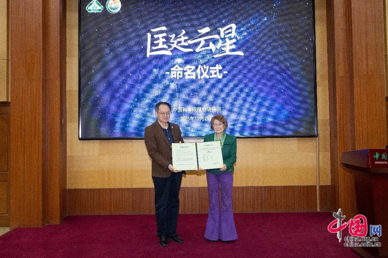 中国网/中国发展门户网讯 (记者 王振红)12月29日,“匡廷云星”命名仪式在中国科学院植物研究所举办。经国际天文学联合会批准,由中国科学院国家天文台施密特CCD小行星项目组于1997年发现的、国际永久编号第29509号小行星,被正式命名为“匡廷云星”。