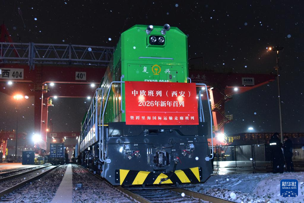 2026年1月1日凌晨,满载45个集装箱光伏组件的中欧班列(西安)2026年新年首列暨跨里海国际运输走廊班列驶出西安国际港站。此趟班列将经霍尔果斯口岸出境,跨过里海,最终抵达阿塞拜疆巴库。