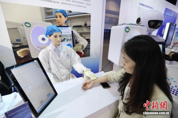 图为5月8日,中医四诊AI机器人亮相北京科博会。中新社记者王紫儒 摄