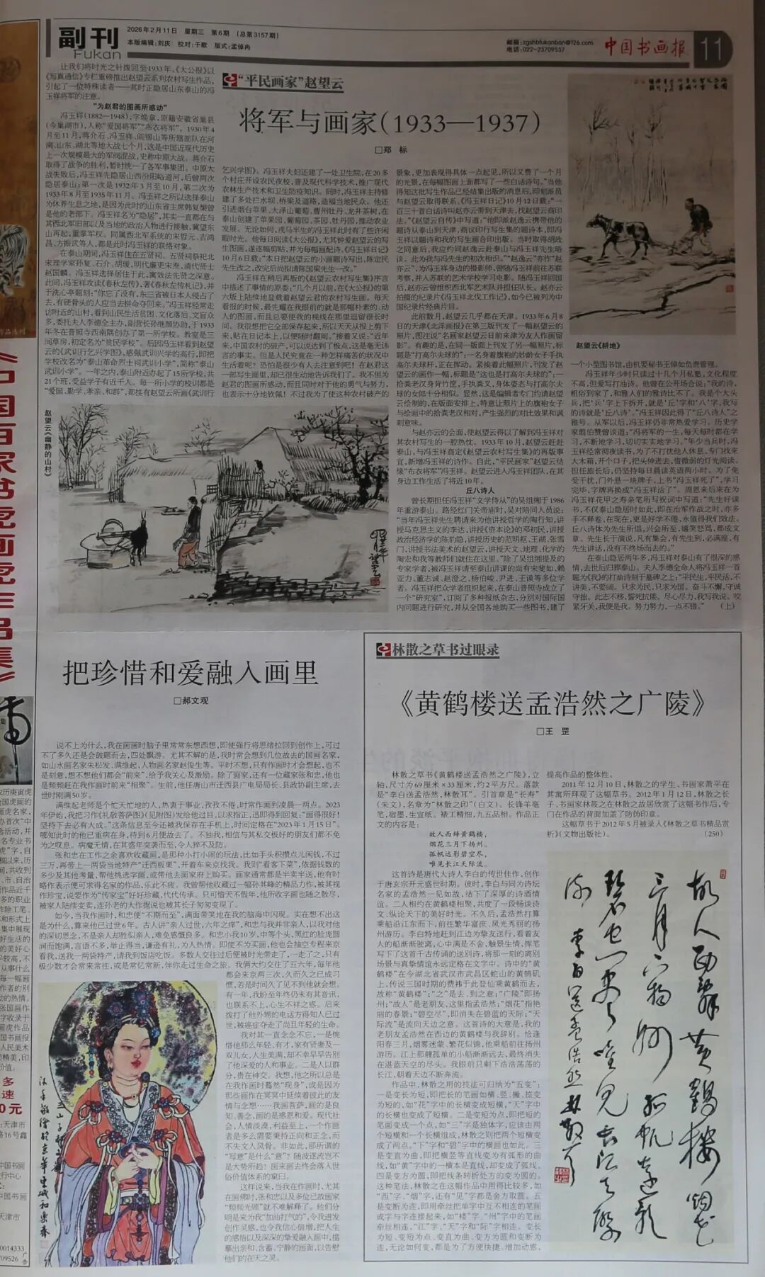 林散之草书《黄鹤楼送孟浩然之广陵》,2012年5月著录在《林散之草书精品赏析》第183页(文物出版社),2026年2月11日发表在《中国书画报》副刊第11版。