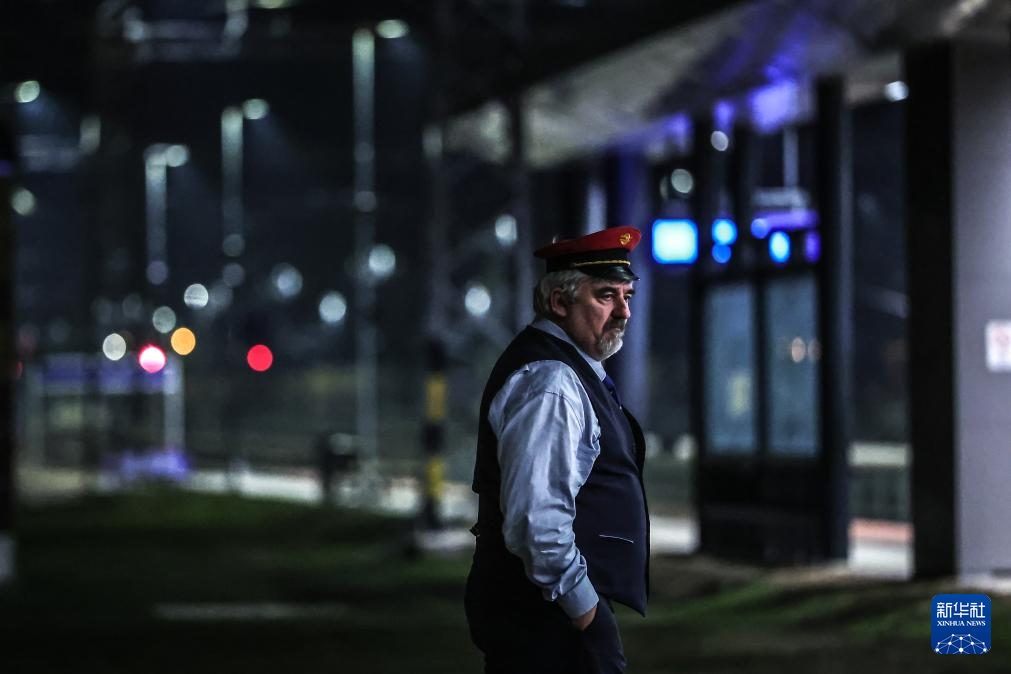 2月27日,在匈牙利布达佩斯,一名工作人员等待货运列车驶入匈塞铁路匈牙利段绍罗克沙尔火车站。新华社发(鲍洛格·达维德摄)