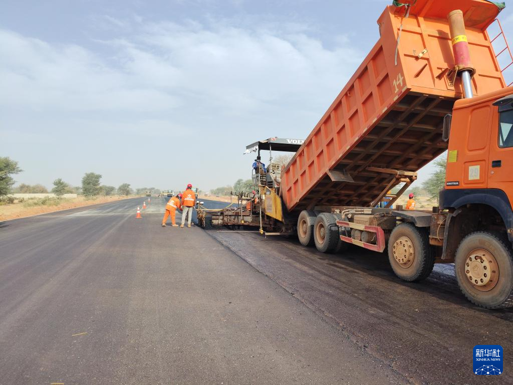 2月24日,在塞内加尔姆布尔市郊,工人在中国路桥工程有限责任公司承建的姆布尔-考拉克高速公路项目上施工。新华社发(中国路桥工程有限责任公司供图)