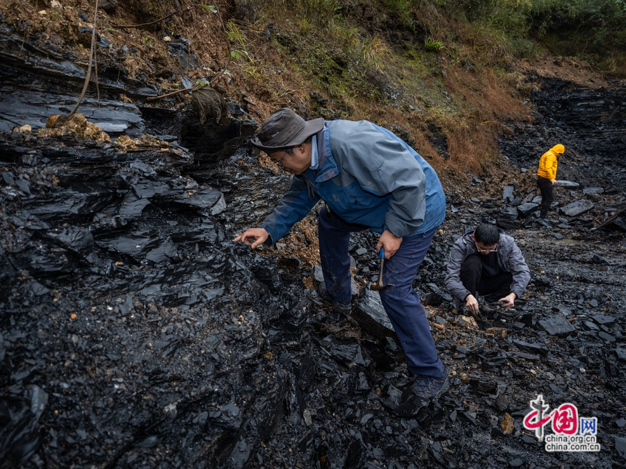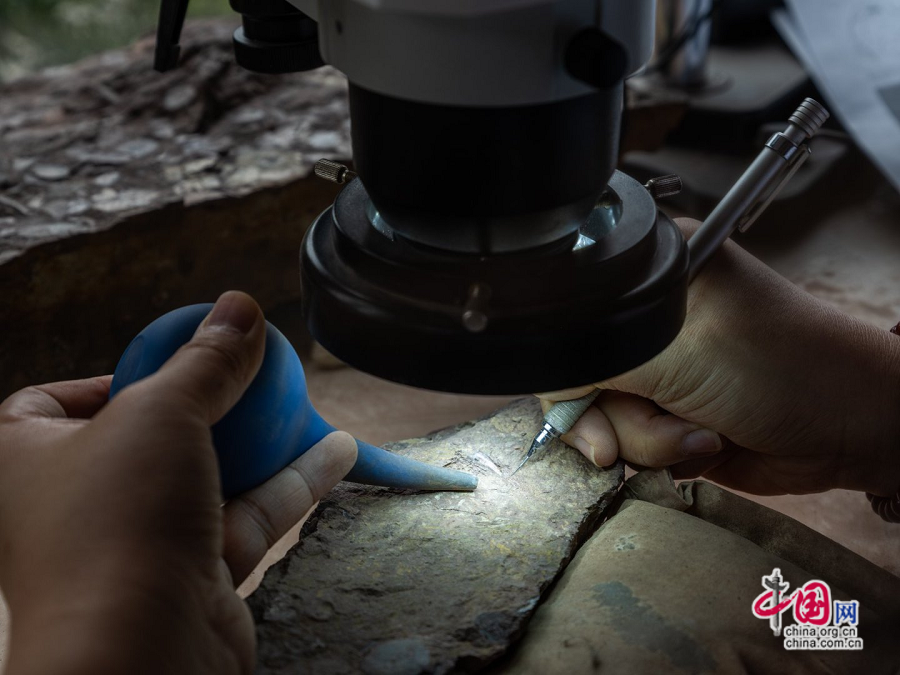图为化石研究。赵钢 摄