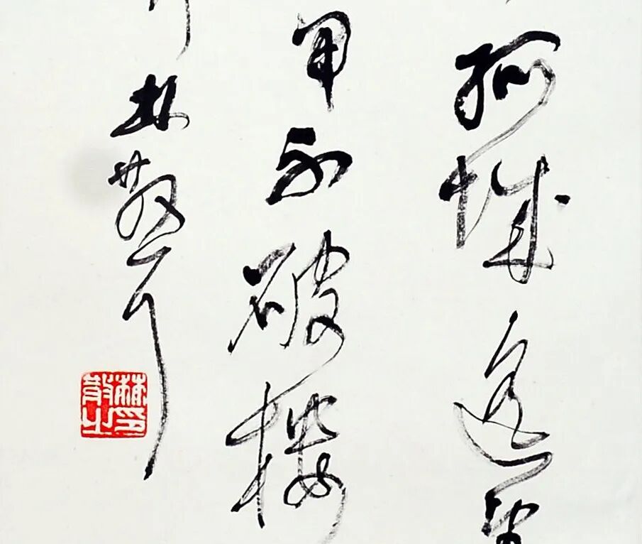 林散之的草书备受启功、郭沫若、青山杉雨等中外书法大家的赞誉,被称为“当代草圣”。林散之的草书尤其是20世纪70年代的作品,在笔法、字法、墨法与章法上变化丰富,他曾说:“审事物,无不变者。变者生之机,不变者死之途。书法之变,尤为显著。”这幅草书《王昌龄〈从军行〉》便是其20世纪70年代巅峰时期的精品力作,以中锋用笔立骨,提按顿挫精准有度,笔锋使转圆活遒劲,枯润墨色相生相济,枯墨显苍劲凝练,润墨藏灵动温润,墨色层次与章法呼应相融。作品技法以连接法为核心,涵盖三种具体方式:“云暗雪”与“遥望玉”,还有“关黄沙”每个字之间以牵丝缀字成组,是为实连;“门”字与“关”字、“甲”字与“不”字借相同的墨色达成视觉连贯,是为色连;“青”字与“海”字、“山”字与“孤”字凭锋势上下呼应衔接,是为势连。三种技法交融,使得全篇气脉贯通,字法简省不失法度,疏密排布错落有致,体势连绵,笔意奔放,似行云流水、如万岁枯藤,既显草书洒脱神韵,又暗合边塞诗雄浑气韵,笔墨与诗文意境深度契合,尽显林散之的书法造诣,收藏价值极高。需要提及的是,林散之在书写时第二行漏写了一个“金”字。