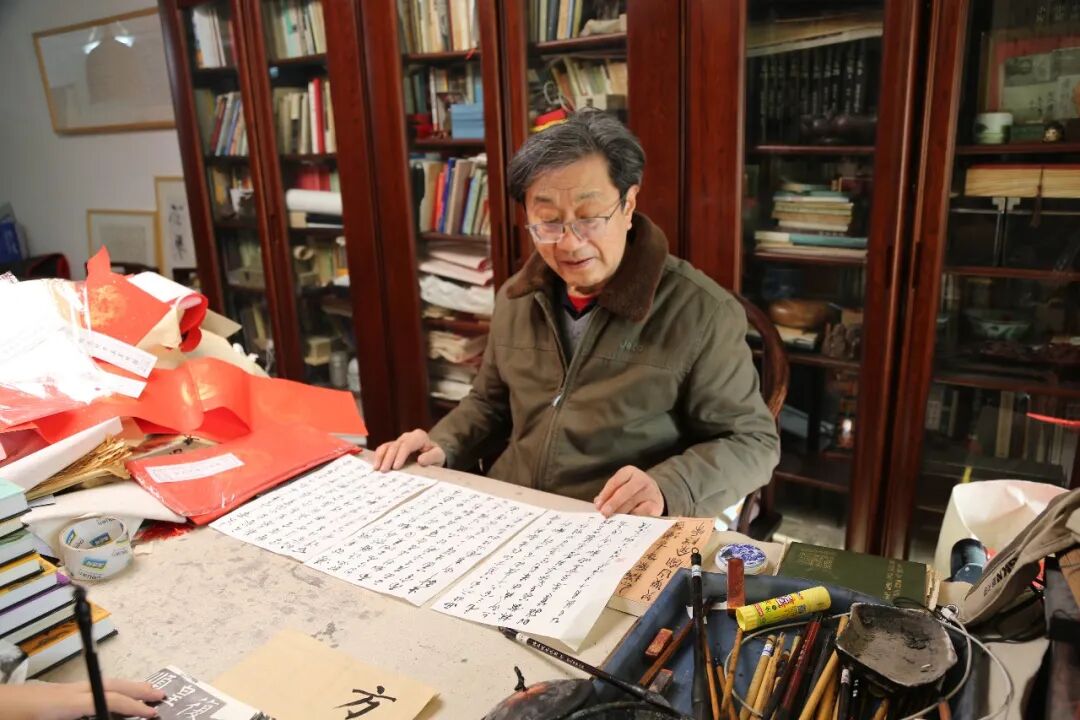 图为庄希祖教授写完《“刷字”新解》后通读检查的情景 王罡 摄