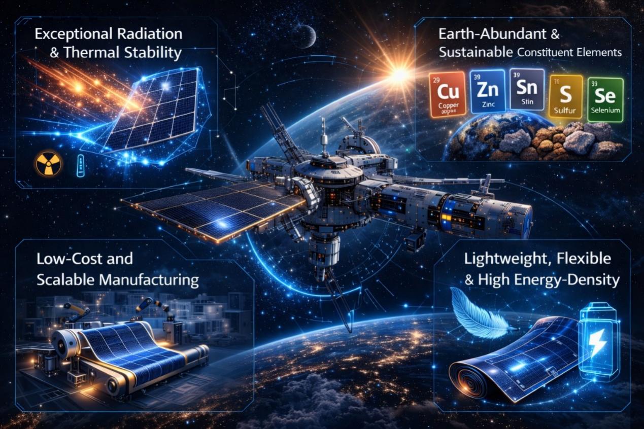 当前,全球能源转型加速,深空探索与空间基础设施建设升级,低轨卫星互联网、太空能源基地等重大工程对太阳能技术提出低成本、长寿命、轻质化、资源可持续的核心要求。CZTSSe材料由铜、锌、锡等常见元素组成,兼具资源丰富、成本低、环境友好、抗太空辐照等优势,其全薄膜叠层技术有望在未来地面与太空大规模能源应用中发挥重要作用。
