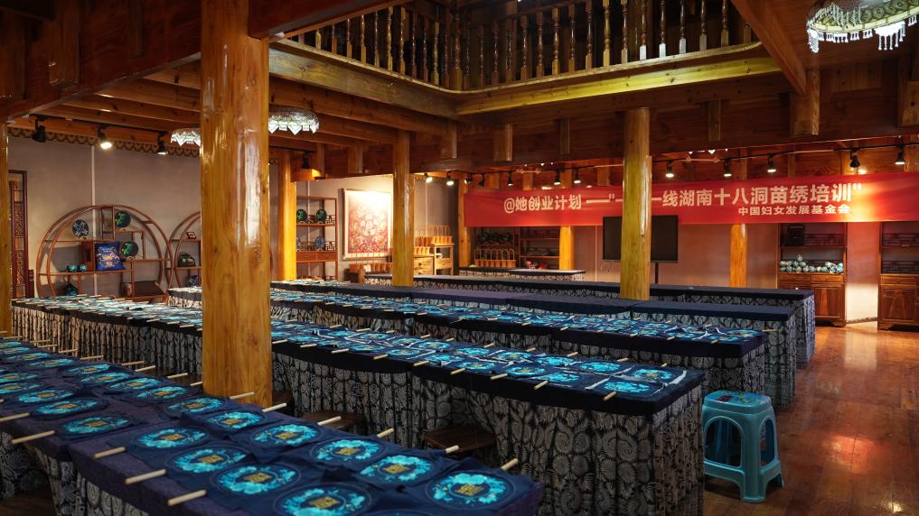 “十八洞片区苗绣乡村振兴示范基地”研学教室。新华社记者 戴斌摄