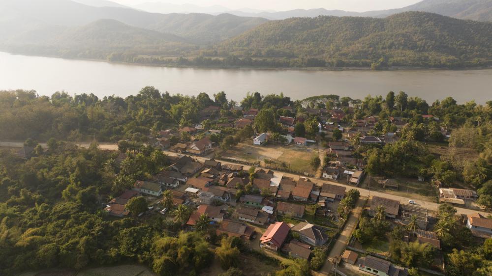 老挝琅勃拉邦省琅勃拉邦市听松村全貌(无人机照片)。新华社发杜大鹏 摄