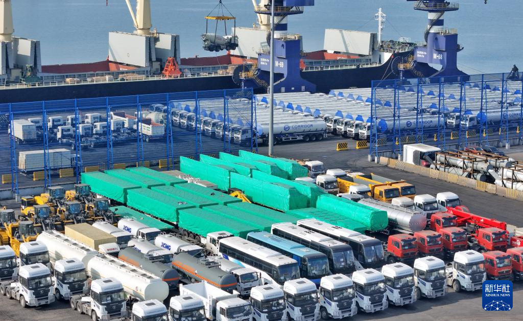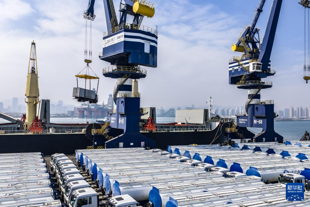 近日,货车、油罐车、混凝土搅拌车等车辆在山东港口烟台港陆续装船,准备出口非洲。今年一季度,烟台港中非件杂货班轮航线发运量突破200万吨,同比增长31.9%,运输货种高度契合非洲国家基建和民生需求。