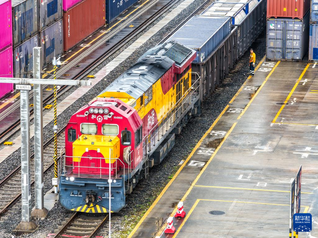 4月21日,一列满载摩托车配件、汽车配件,以及“重庆造”化工品的西部陆海新通道班列从重庆团结村站缓缓驶出。